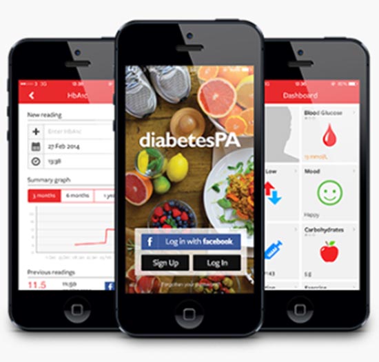 With the new DiabetesPA app, you can log in and track levels of blood glucose, insulin, mood, exercise, medication, HbA1c, blood pressure, carbohydrates, calories, alcohol, weight, BMI, cholesterol and ketones