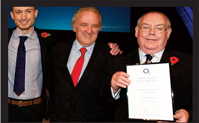 Chris receiving an O2 Media Award – one of many he helped the paper to win over the years
